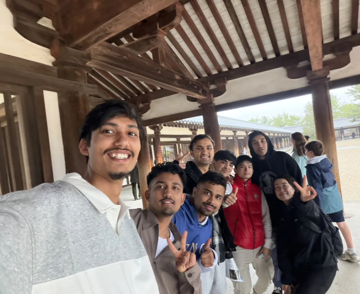 続いて訪れたのは東大寺。世界最大級の木造建築と大仏の迫力に、学生たちは思わず息をのみ、「すごい」「大きい」と感嘆の声を上げていました。国の歴史や文化に触れ、日本で学ぶ意味を改めて感じた学生も多かったようです。