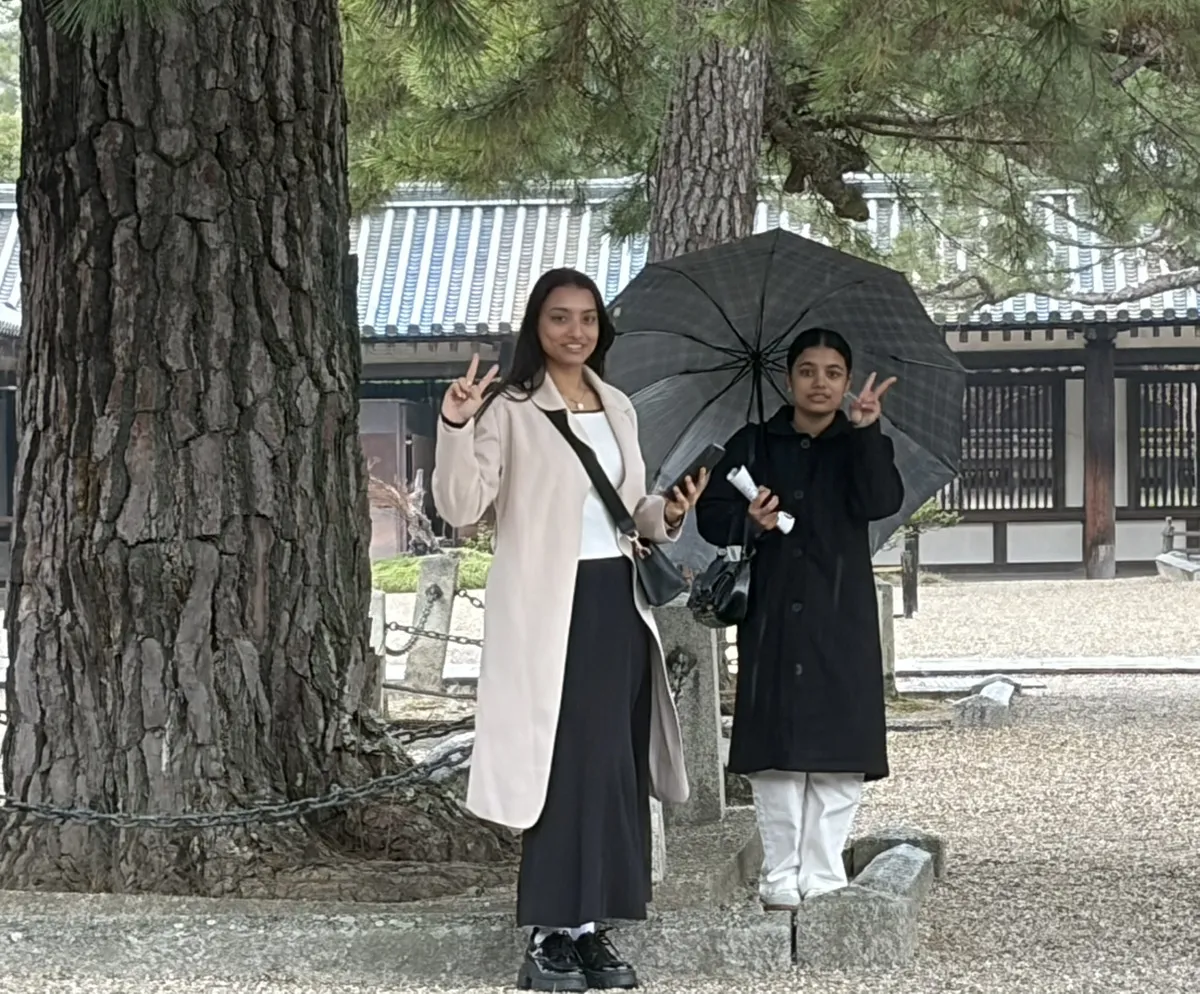 午後は法隆寺へ移動しました。雨の中の参拝となりましたが、しっとりとした雰囲気の中で見る五重塔や金堂は、晴れの日とはまた違った趣があり、学生たちも静かに歴史の深さを感じている様子でした。学びの時間としても充実したものになりました。